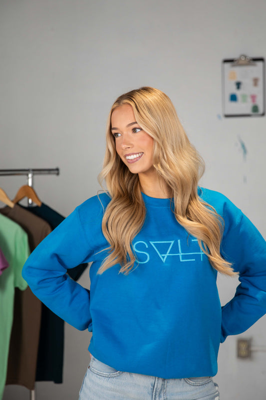 varsity sweater in blue crush