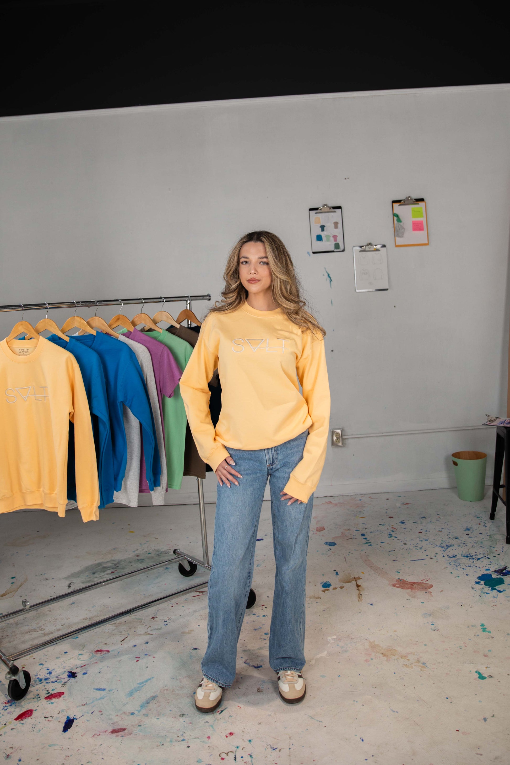 tired of prepping for the next snowfall? prep for spring instead with our new daybreaker crew. this creamy soft yellow warms us up from the inside out. an instant mood lifter, we like it best with light denim and fresh spring energy.